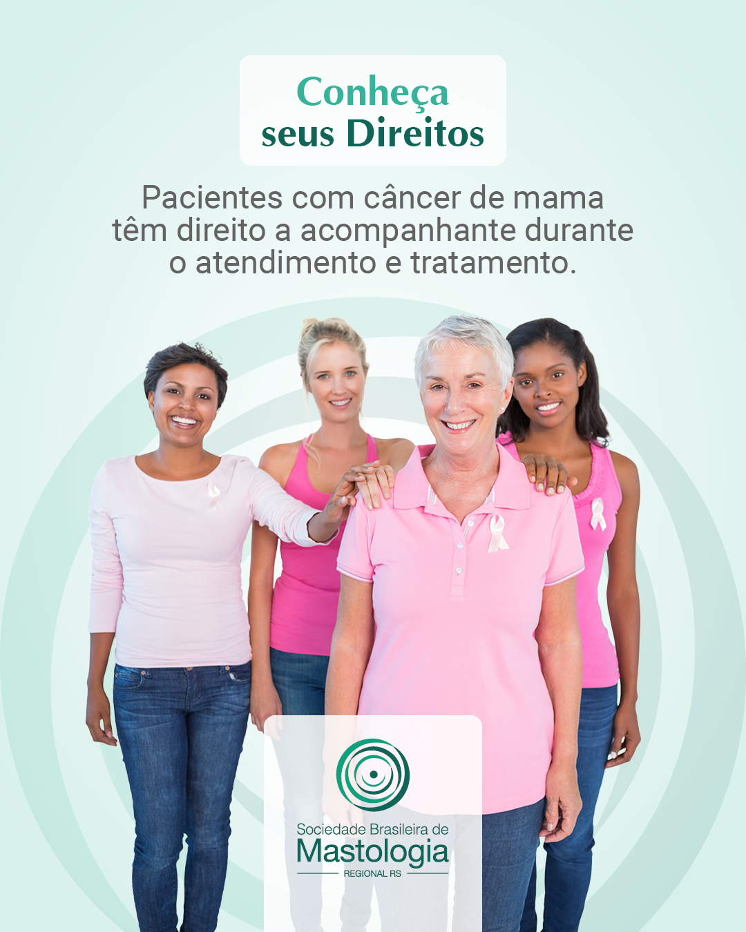 Conheça seus Direitos: Pacientes com câncer de mama têm direito a acompanhante durante o atendimento e tratamento.