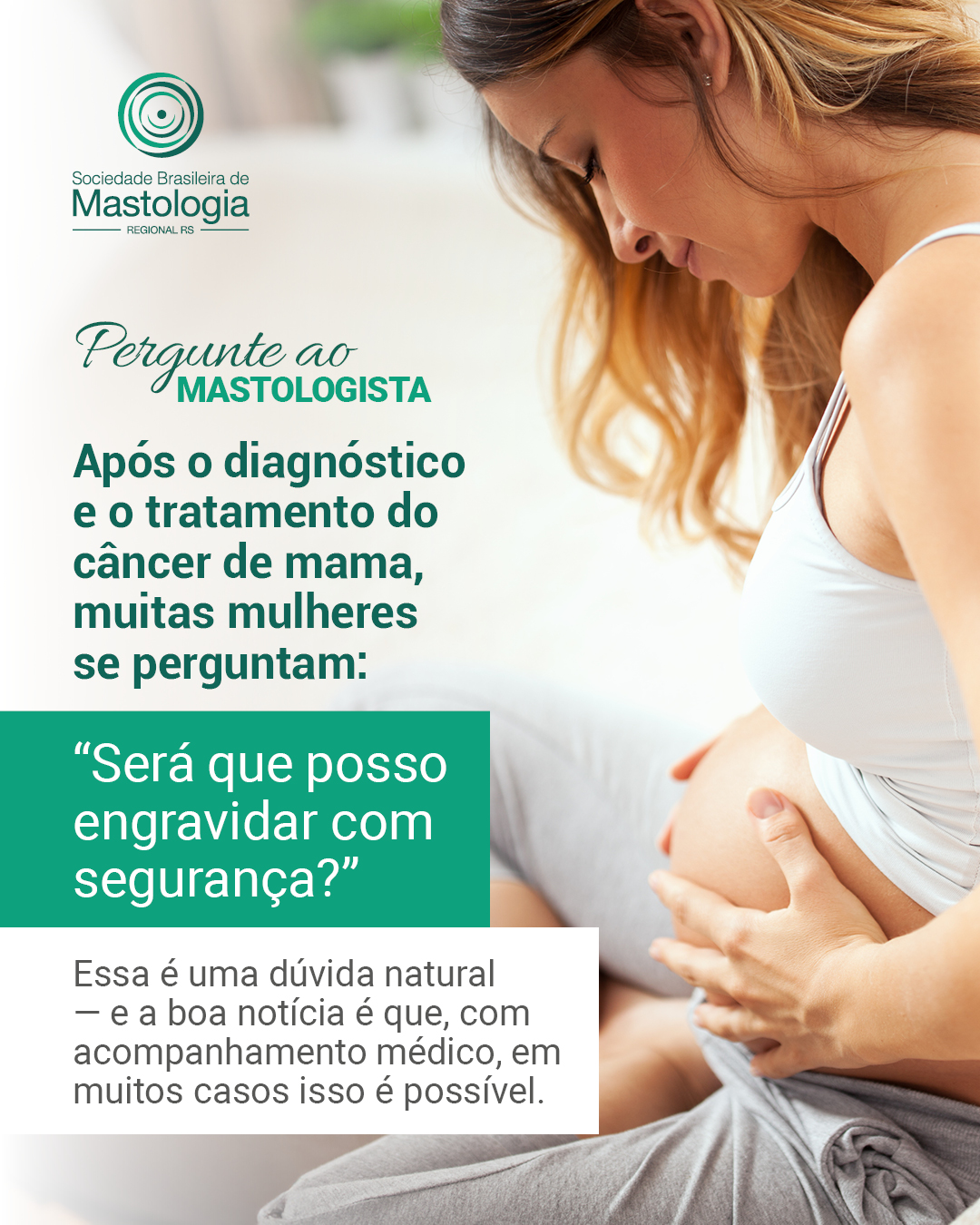 A decisão de 🤰🏾 engravidar após o câncer de mama deve ser cuidadosamente avaliada com o mastologista e o oncologista.